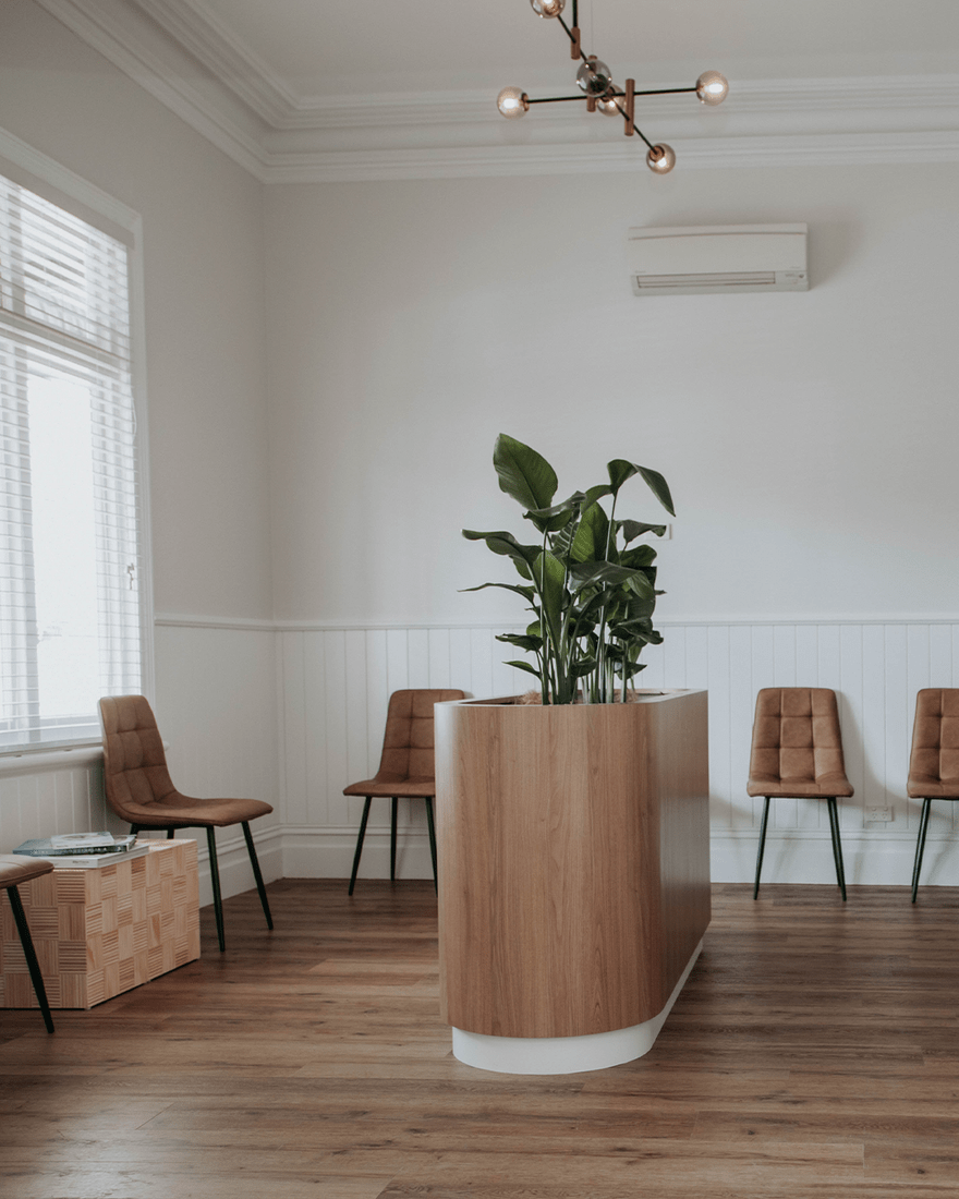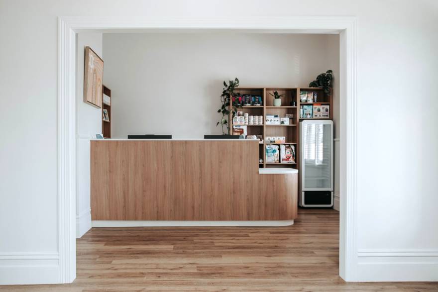 Light and flow were key to the redesign. Several internal walls were opened to create brighter consult rooms, improving visibility and comfort for both patients and staff. To meet accessibility requirements, a new front ramp was constructed, blending seamlessly with the existing façade.